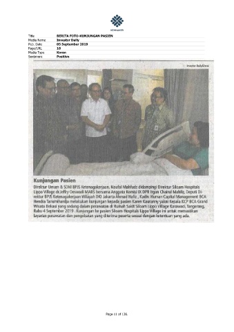 Title BERITA FOTO-KUNJUNGAN PASIEN Media Name Investor Daily Pub. Date 05 September 2019 Page/URL 10 Media Type Koran Sentiment Positive Page 11 of 136.