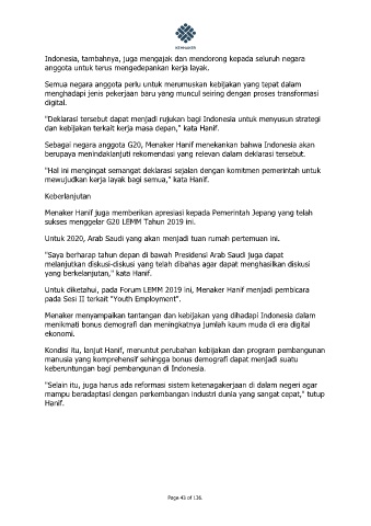 Sebagai negara anggota G20, Menaker Hanif menekankan bahwa Indonesia akan