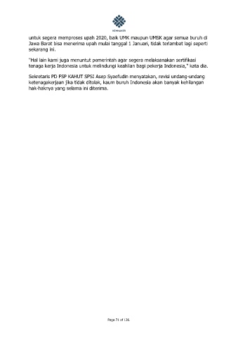 untuk segera memproses upah 2020, baik UMK maupun UMSK agar semua buruh di