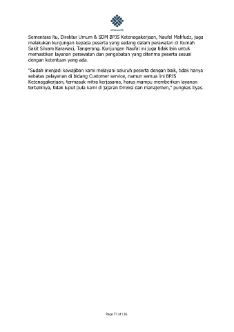 sebatas pelayanan di bidang Customer service, namun semua lini BPJS