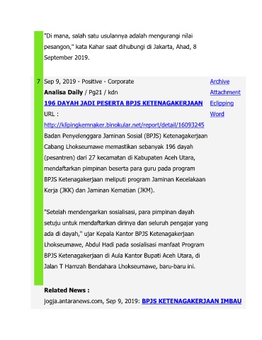 196 DAYAH JADI PESERTA BPJS KETENAGAKERJAAN Eclipping