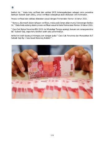 Bantuan Subsidi Upah (BSU), untuk verifikasi selanjutnya akan dilakukan oleh Kemnaker.
