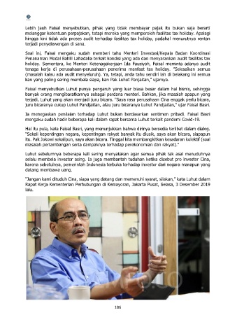 Faisal menyebutkan Luhut punya pengaruh yang luar biasa besar dalam hal bisnis, sehingga