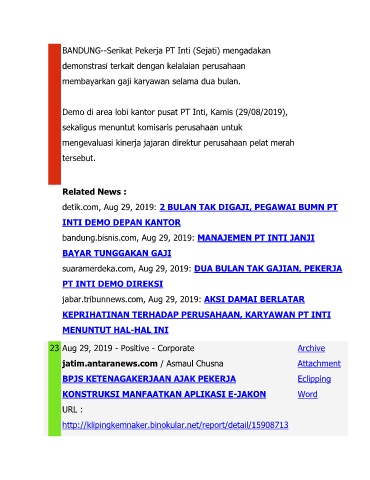 bandung.bisnis.com, Aug 29, 2019: MANAJEMEN PT INTI JANJI