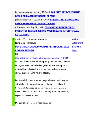 jateng.antaranews.com, Aug 29, 2019: BNP2TKI: TKI BERPELUANG