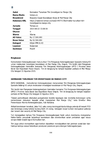 Judul Kemnaker Turunkan Tim Investigasi ke Margo City