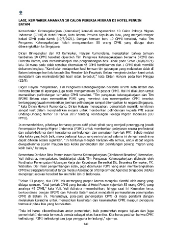 CPMI di Batam ini. Menurutnya, pola-pola penempatan CPMI di masa pandemi dengan