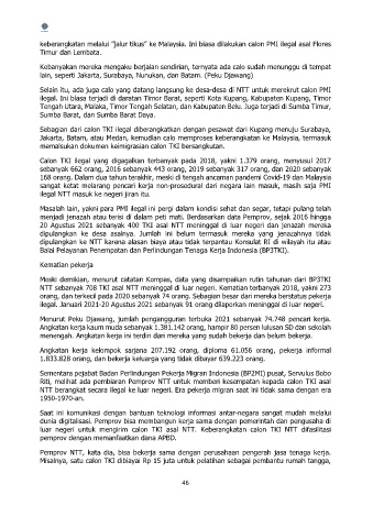 ilegal. Januari 2021-20 Agustus 2021 sebanyak 91 orang dilaporkan meninggal di luar negeri.