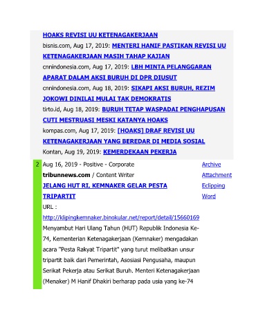 bisnis.com, Aug 17, 2019: MENTERI HANIF PASTIKAN REVISI UU
