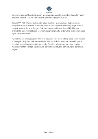 Ketua DPP PKB, Muhaimin Iskandar atau Cak Imin mengatakan Ida berpotensi