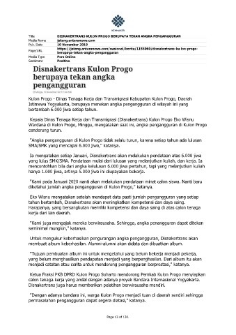 Title DISNAKERTRANS KULON PROGO BERUPAYA TEKAN ANGKA PENGANGGURAN