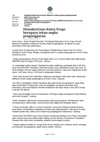 Title DISNAKERTRANS KULON PROGO BERUPAYA TEKAN ANGKA PENGANGGURAN