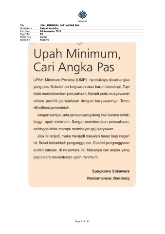 Title UPAH MINIMUM, CARI ANGKA PAS Media Name Rakyat Merdeka Pub. Date 10 November 2019 Page/URL 19 Media Type Koran Sentiment Positive Page 8 of 130.