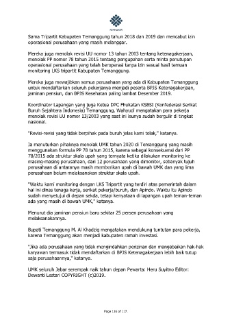 "Waktu kami monitoring dengan LKS Tripartit yang terdiri atas pemerintah dalam