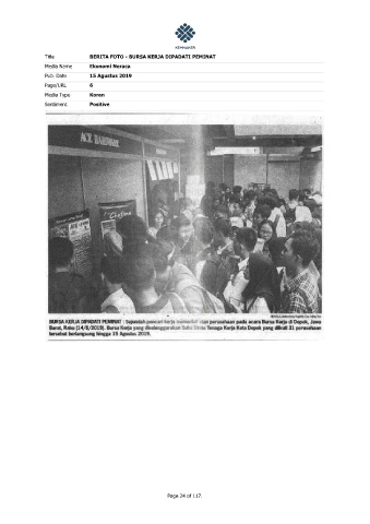 Title BERITA FOTO - BURSA KERJA DIPADATI PEMINAT Media Name Ekonomi Neraca Pub. Date 15 Agustus 2019 Page/URL 6 Media Type Koran Sentiment Positive Page 24 of 117.
