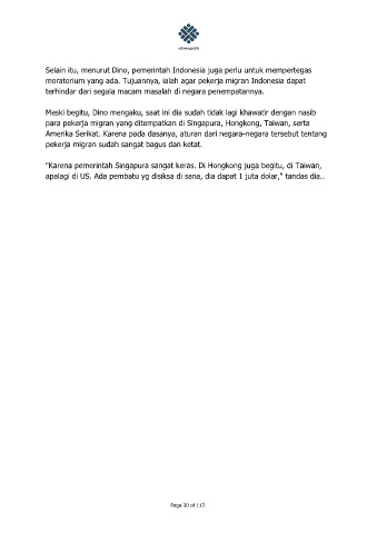 moratorium yang ada. Tujuannya, ialah agar pekerja migran Indonesia dapat