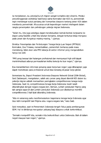 penyelenggaraan workshop hasil kerja sama Kemnaker dan KDI ini, pemerintah