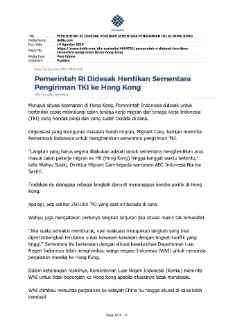 Title PEMERINTAH RI DIDESAK HENTIKAN SEMENTARA PENGIRIMAN TKI KE HONG KONG