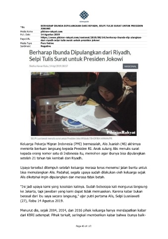 Title BERHARAP IBUNDA DIPULANGKAN DARI RIYADH, SELPI TULIS SURAT UNTUK PRESIDEN