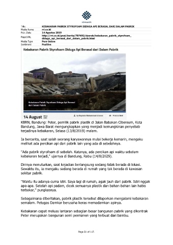 Title KEBAKARAN PABRIK STYROFOAM DIDUGA API BERASAL DARI DALAM PABRIK