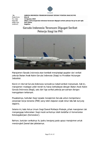 Title GARUDA INDONESIA TERANCAM DIGUGAT SERIKAT PEKERJA IKAGI KE PHI