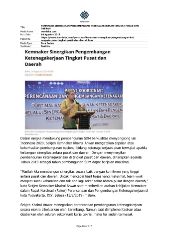 Title KEMNAKER SINERGIKAN PENGEMBANGAN KETENAGAKERJAAN TINGKAT PUSAT DAN