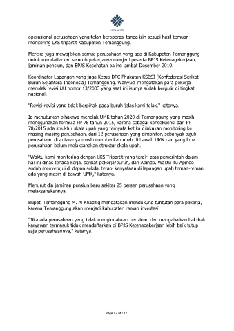 "Waktu kami monitoring dengan LKS Tripartit yang terdiri atas pemerintah dalam