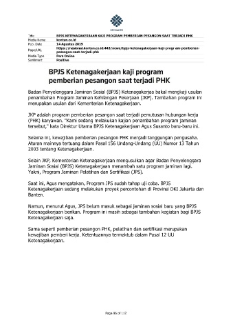 Title BPJS KETENAGAKERJAAN KAJI PROGRAM PEMBERIAN PESANGON SAAT TERJADI PHK