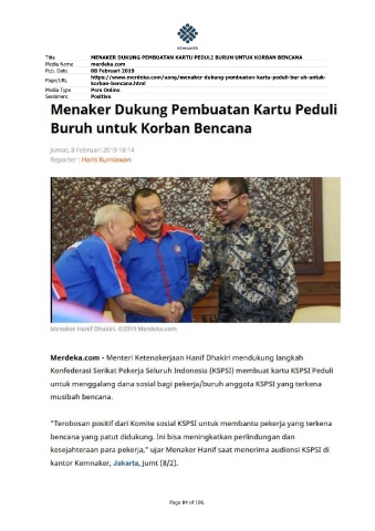 Title MENAKER DUKUNG PEMBUATAN KARTU PEDULI BURUH UNTUK KORBAN BENCANA