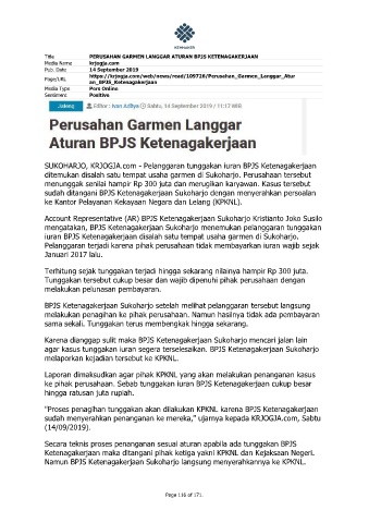 Title PERUSAHAN GARMEN LANGGAR ATURAN BPJS KETENAGAKERJAAN