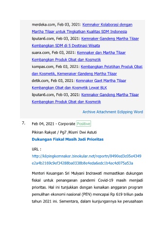 liputan6.com, Feb 03, 2021: Kemnaker Gandeng Martha Tilaar