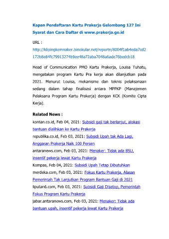 kontan.co.id, Feb 04, 2021: Subsidi gaji tak berlanjut, alokasi