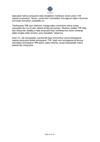diputuskan bahwa pengusaha tetap diwajibkan membayar secara penuh THR