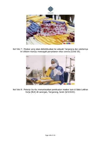 Ket foto 8 : Pekerja ibu-ibu menyelesaikan pembuatan masker kain di Balai Latihan