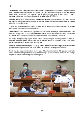 lokal, bukan 5.000 TKA," ujar Menaker Ida di sela-sela rapat kerja dengan Komisi IX DPR,