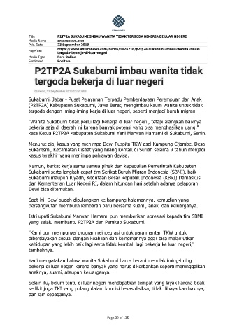 Title P2TP2A SUKABUMI IMBAU WANITA TIDAK TERGODA BEKERJA DI LUAR NEGERI