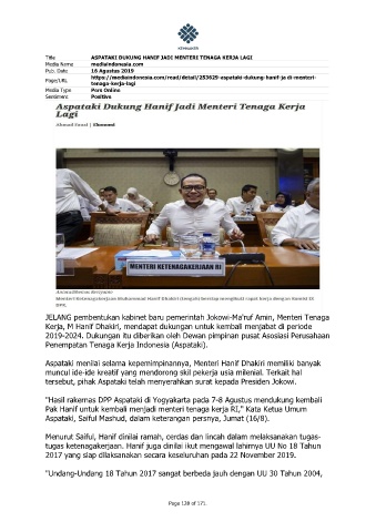 Title ASPATAKI DUKUNG HANIF JADI MENTERI TENAGA KERJA LAGI