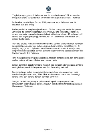 "Tingkat pengangguran di Indonesia saat ini berada di angka 5,01 persen atau