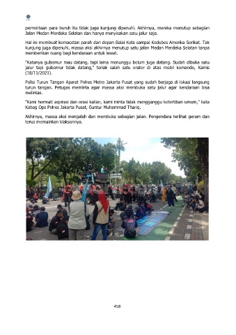 kunjung juga dipenuhi, massa aksi akhirnya menutup satu jalan Medan Merdeka Selatan tanpa