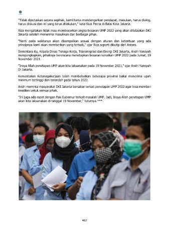 Andri meminta masyarakat DKI Jakarta bersabar terkait penetapan UMP 2022 agar bisa memberi