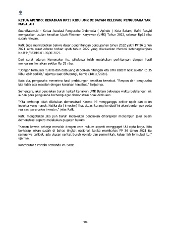 SuaraBatam.id - Ketua Asosiasi Pengusaha Indonesia ( Apindo ) Kota Batam, Rafki Rasyid