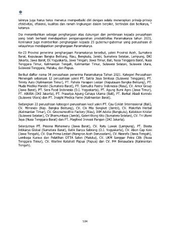 Berikut daftar nama 34 perusahaan penerima Paramakarya Tahun 2021. Kategori Perusahaan