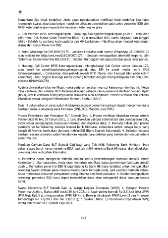 Kemnaker b. Jika tercantum, Anda akan menerima notifikasi status penerimaan bantuan subsidi