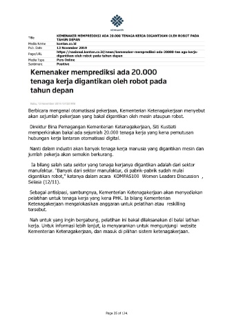 Title KEMENAKER MEMPREDIKSI ADA 20.000 TENAGA KERJA DIGANTIKAN OLEH ROBOT PADA
