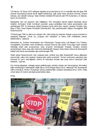 Eva mengungkapkan, sebagai upaya perlindungan pekerja migran dan keluarganya, Kemnaker