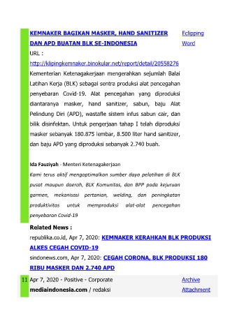 sindonews.com, Apr 7, 2020: CEGAH CORONA, BLK PRODUKSI 180