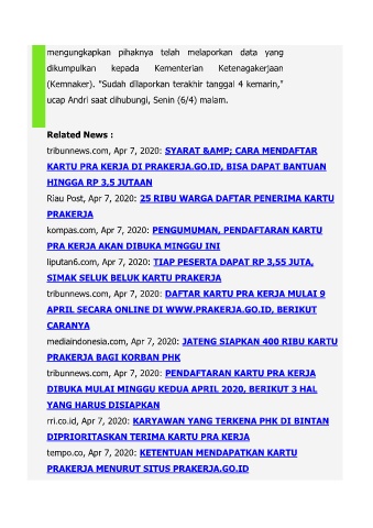 tribunnews.com, Apr 7, 2020: PENDAFTARAN KARTU PRA KERJA