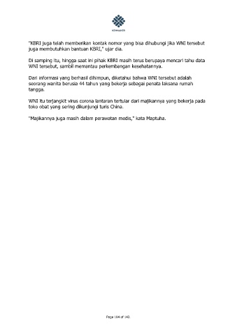 WNI tersebut, sambil memantau perkembangan kesehatannya.