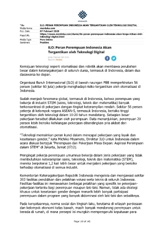 Title ILO: PERAN PEREMPUAN INDONESIA AKAN TERGANTIKAN OLEH TEKNOLOGI DIGITAL