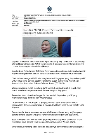 Title KONDISI WNI POSITIF VIRUS CORONA DI SINGAPURA MULAI STABIL